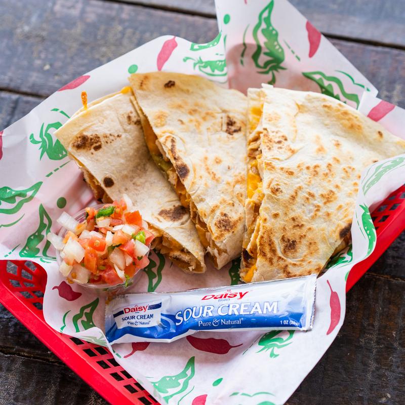 Grilled fajita chicken, grilled peppers & onions, queso fresco.