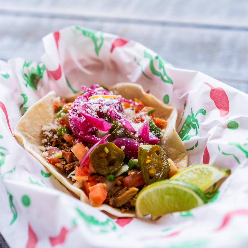 Slow-smoked brisket, cowboy candy sweet jalapenos, pickled onions, pico, queso fresco.